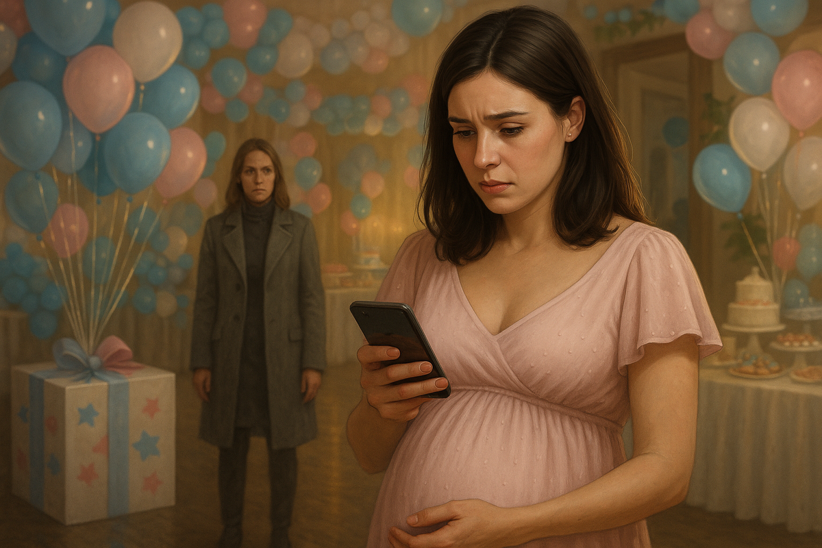 Она не подошла ко мне. Она пошла по залу, будто выбирая в магазине: заглянула к столу с десертами, остановилась у стенда с фотографиями «как мы ждали», улыбнулась в сторону моей мамы. Потом — наклонилась к двум гостям и что-то сказала. Те переглянулись. У меня в животе холодок.