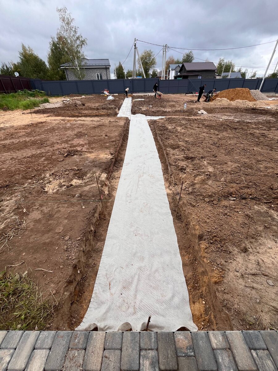 Продолжаем работы на участке: выполнена выемка грунта согласно проектным отметкам, произведена укладка геотекстиля и последующая отсыпка