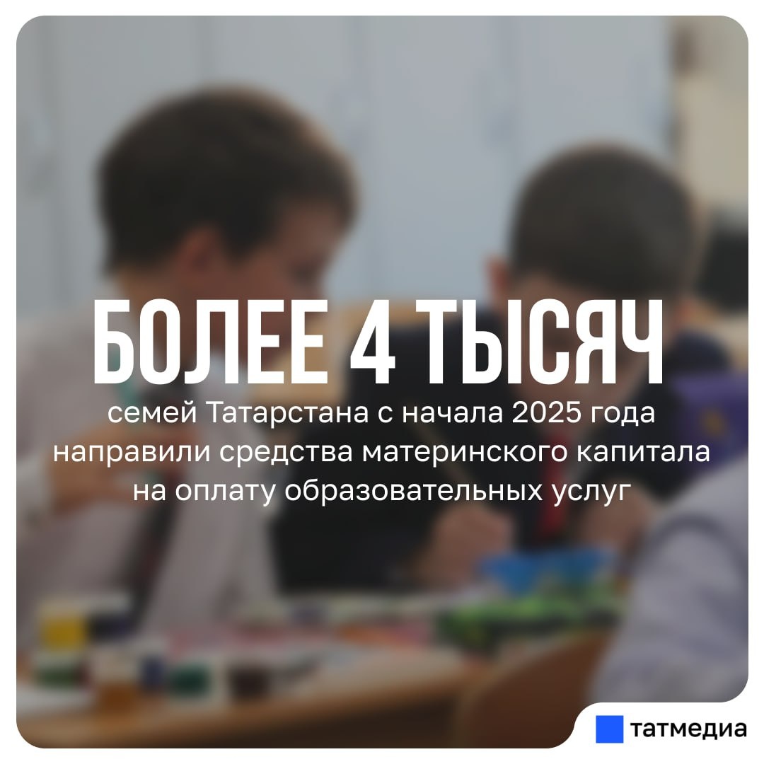 🏫👨👩👧👦 Более 4 тысяч семей Татарстана с начала 2025 года направили маткапитал на образование