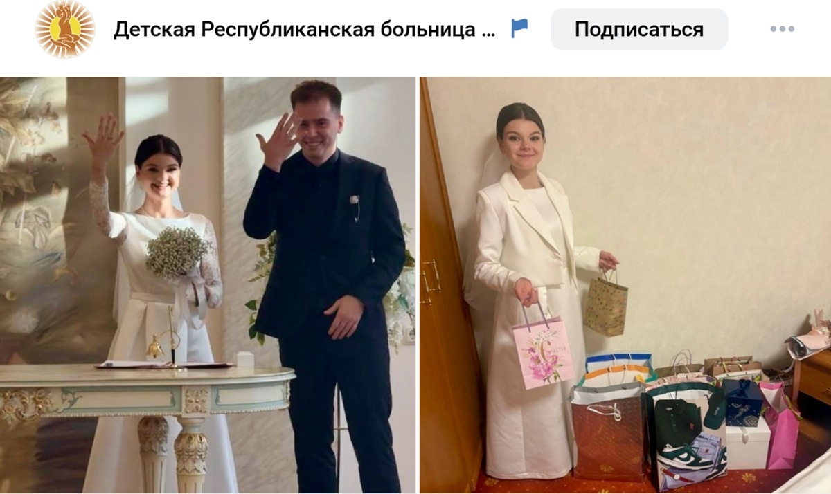В столице Карелии молодожены вместо букетов на свадьбу попросили гостей подарить раскраски, пластилин, карандаши, мягкие игрушки, настольные игры и наборы для творчества. Все эти подарки молодые люди отнесли в Детскую республиканскую больницу имени И.Н. Григовича. Медсестра отделения анестезиологии и реанимации Анастасия Черткова рассказала в паблике больницы, что идея с подарками для детей появилась из личного опыта. Девушка была на свадьбе подруги: «Безусловно, цветы — это красиво и приятно, но гости тратят на них огромные суммы. А потом эти букеты просто некуда девать, они вянут. Поэтому я предложила альтернативу, и мой жених Даня абсолютно и полностью меня поддержал». Гости свадьбы откликнулись на идею. Некоторые приходили с двумя пакетами подарков, приносили много игрушек. Все подарки передали маленьким пациентам больницы.