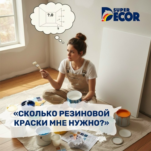 Следует учитывать несколько факторов: площадь поверхности, тип поверхности, количество слоёв и расход краски на 1 м². Если вы окрашиваете стены, вычтите из общей площади окна и двери. Например, у нас получилось 60 м². 2. Учитываем расход краски на 1 м² В зависимости от типа поверхности, расход краски на 1 м² может варьироваться. Это мы указали в нашем калькуляторе и (при двухслойном нанесении краски). Так, для покраски пористой поверхности, например, бетона расход краски SuperDecor при двухслойном нанесении составит 450 г/м² 3. Рассчитаем необходимое количество краски Площадь нашей окрашиваемой поверхности 60 м². - Для покраски бетона нам понадобится: 60 м² × 450 г/м² = 27 000 г = 27 кг (что также указано в калькуляторе); 4. Выбор упаковки краски Резиновая краска SuperDecor продаётся в ведрах по 1, 3, 6, 12 и 40 кг. - Для 27 кг резиновой краски потребуется 2 ведра по 12 кг и 1 ведро по 3 кг. 5. Учет способа нанесения Влияет на расход то, чем наносится краска: кистью, валиком или краск