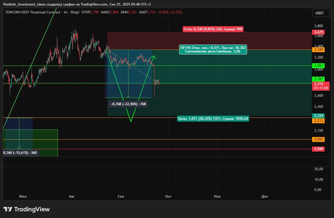 #TONCOIN в випе давал сетап на шорт, который отрабатывает