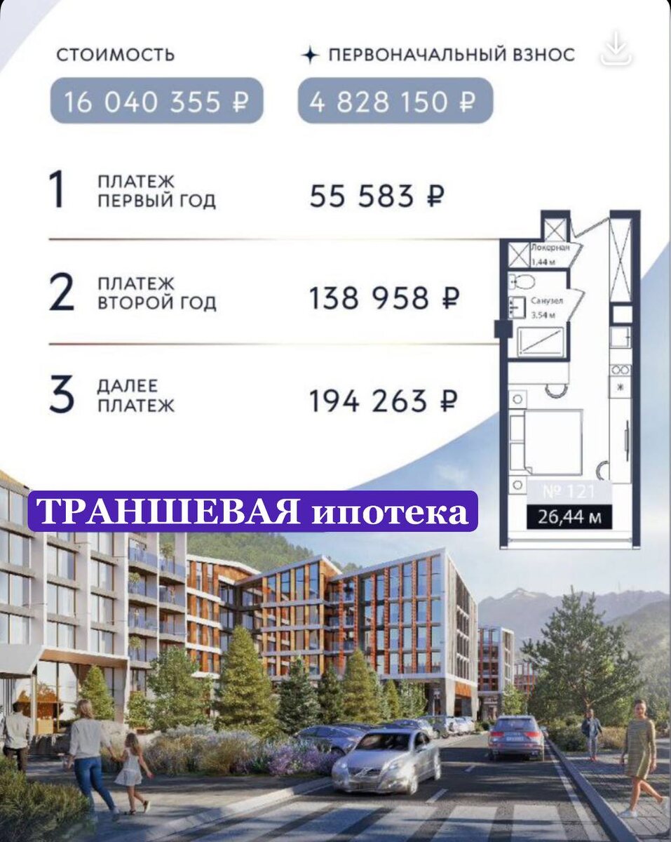 ! ВНИМАНИЕ ! Стоимость - 16 040 355 руб ПВ 30% - 4 828 150 руб Траншевая ипотека СБЕР на 30 лет! Ставка 21,9% Пример расчетов, для нашего покупателя ТРАНШЕВАЯ ипотека на гостиничный номер: Первый год платеж 59 700 рублей Второй год - 149 200 рублей С октября 2027 года платежи 208 550 руб Все подробности на консультации #архыз #пассивныйдоход #откльныйномер #гостиничныйномер