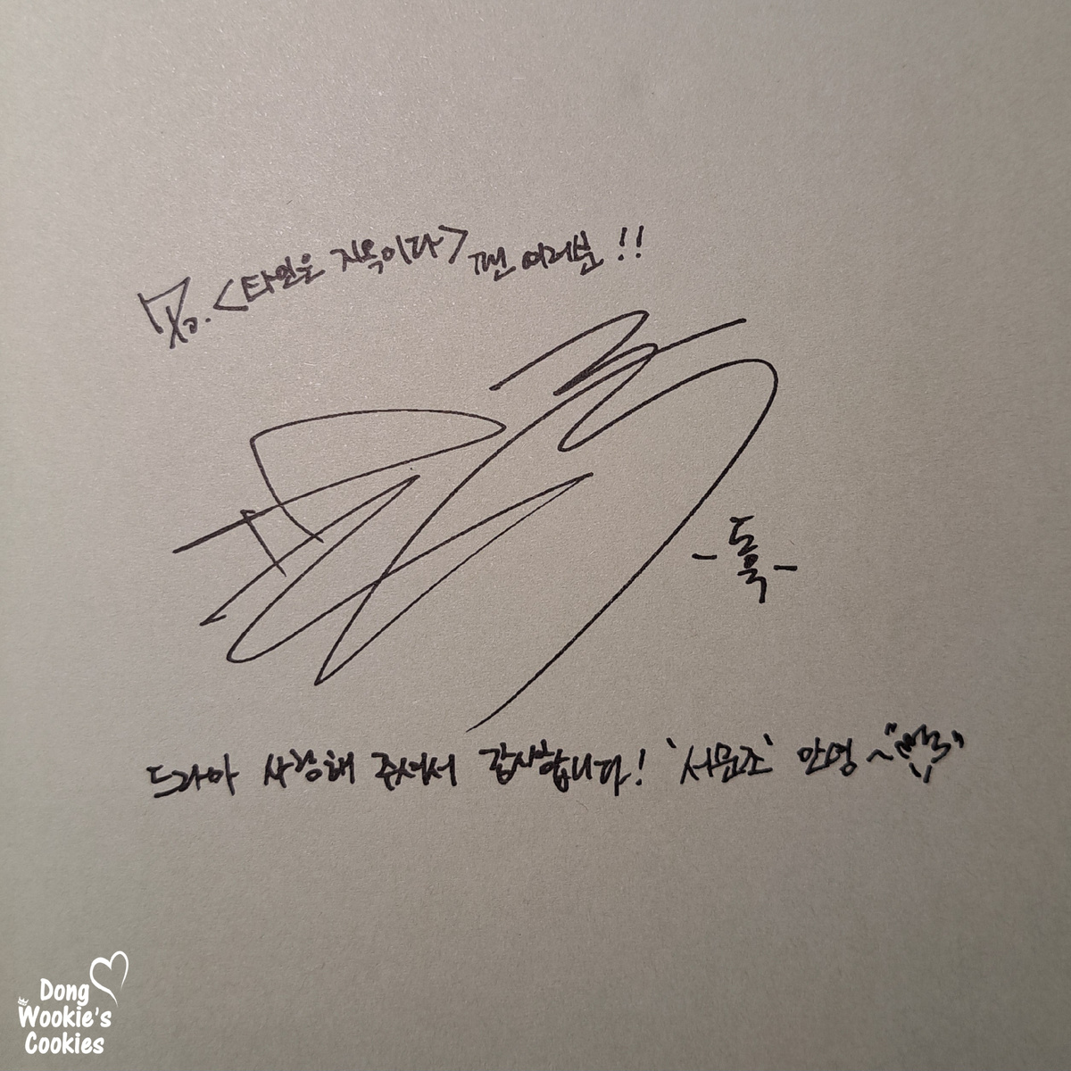 Давно у нас не было уроков корейского с Дон Уком. Исправляемся). Сегодня у нас самостоятельное чтение. Вот такой автограф и послание оставил Ли Дон Ук для фанатов одной из своих дорам. Что же он написал? О какой дораме речь и как зовут его персонажа? Кто сможет прочитать и понять? (только чур в ответ не подглядывать😉) А вот и ответ! На корейском Ли Дон Ук написал: To: <타인은 지옥이다> 드라마 사랑해 주셔서 감사합니다! “서문조” 안녕 В переводе это означает: «Всем поклонникам дорамы «Незнакомцы из ада»!! Спасибо за любовь к дораме! Привет от Со Мун Чжо». Ну как, разобрали почерк любимки?