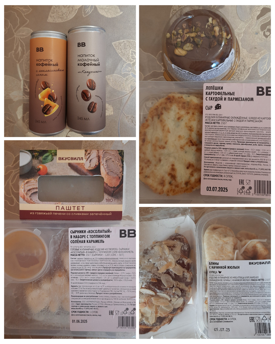 Мои покупки за лето, с дегустацией и описанием. - Сырники "Косолапый" в наборе с топпингом соленая карамель Их, к сожалению, вывели из ассортимента. Не знаю почему? Милота же! Отличный состав у сырников на твороге 5%. Сами же делали карамель из сливок, сливочного масла и сахара. Карамели хорошее количество. По цене, брала тогда по 232р. Уж не помню, по акции это было или полная цена. Визуально – очень прикольно! Особенно для детей. Изготовитель – ООО Котмаркот, г. Москва. - Паштет из говяжьей печени со сливками запеченный 180г Он на фото над сырниками. Моя постоянная покупка. Прочитать подробнее можно в закупке 46. - Напиток молочный кофейный "Капучино", 245 мл за 162р - Напиток кофейный с апельсиновым соком среднегаз, 245 мл за 174р Дело было в жару. А в жару отлично заходит уже готовый холодный кофе. Взяла 2 вида на пробу. Но ни один мне не зашел. По уровню сладости. Совершенно не мой баланс. А его уже не исправить, сахар не добавить. Потому что текстура будет испорчена. Мне нравился