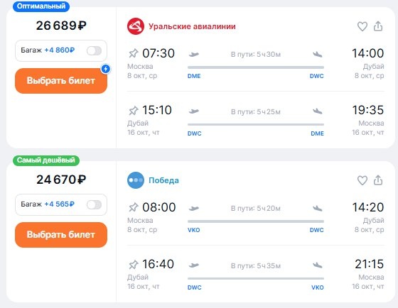 ✈️Москва - Дубай (ОАЭ), туда и обратно от 24700 рублей