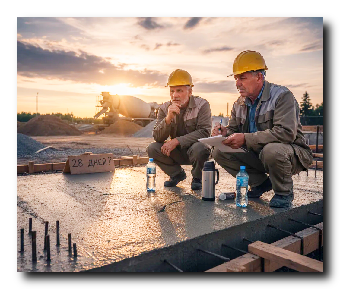 - Лайфхак №2: «Правило «семи дней» для частника». У вас нет лаборатории, чтобы проверить прочность? Я понимаю. Запомните простое эмпирическое правило. При устойчивой среднесуточной температуре от +20°C к минимальным работам (обратная засыпка, распалубка) можно приступать через 3-5 дней. К началу кладки легких стен (газобетон, пеноблок) – не ранее чем через 7-10 дней. К кладке тяжелых (кирпич) – через 14-21 день. Это не точная наука, но это надежный ориентир, проверенный поколениями строителей. А если температура ниже +15, смело умножайте эти сроки в полтора-два раза.