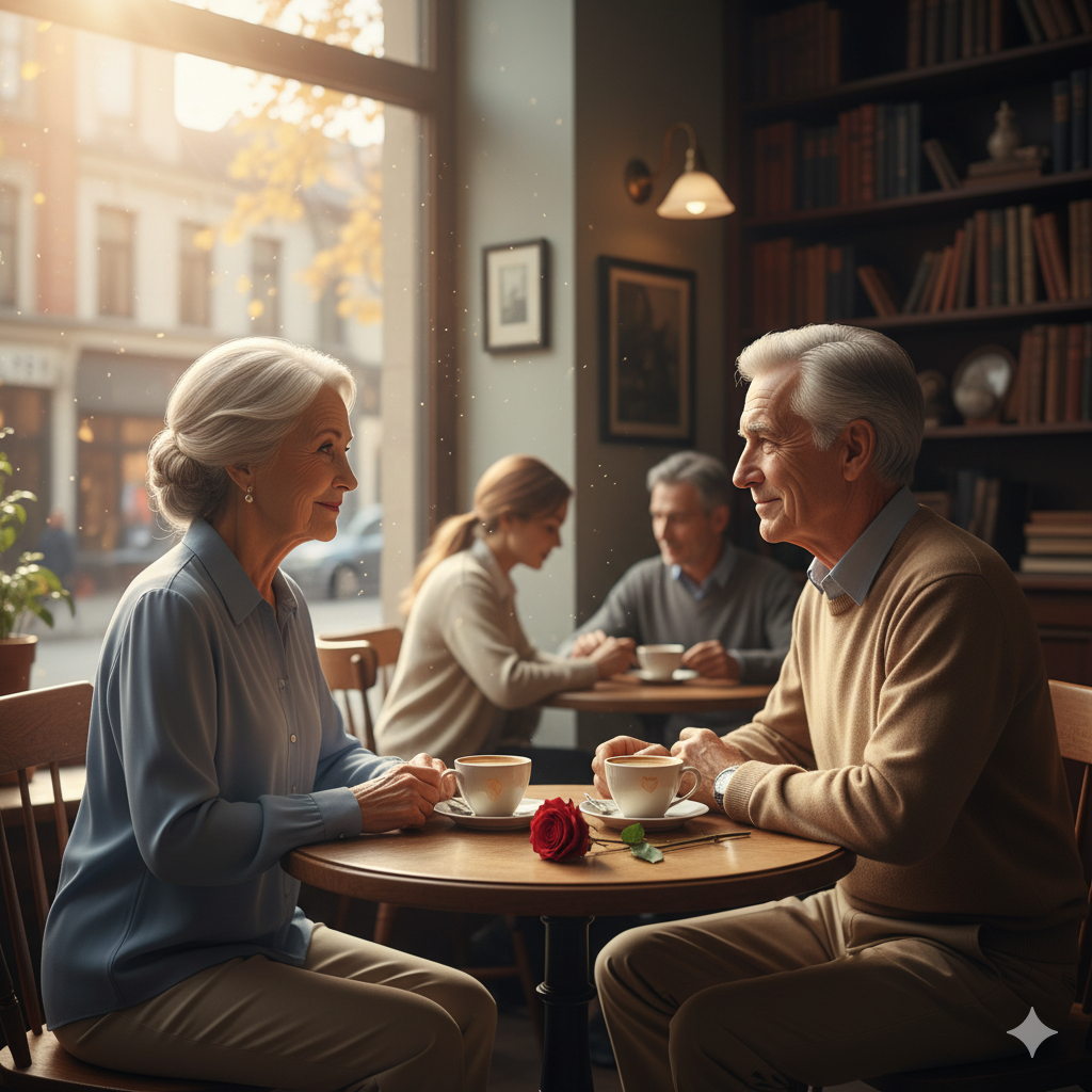 Мы договорились встретиться в небольшом уютном кафе в центре города. Я пришла на десять минут раньше, села за столик у окна. И вот я увидела, как он вошел. Высокий, седой, в элегантном пальто. Он огляделся, наши глаза встретились, и он улыбнулся. Той самой, своей мальчишеской улыбкой, которая когда-то сводила меня с ума.