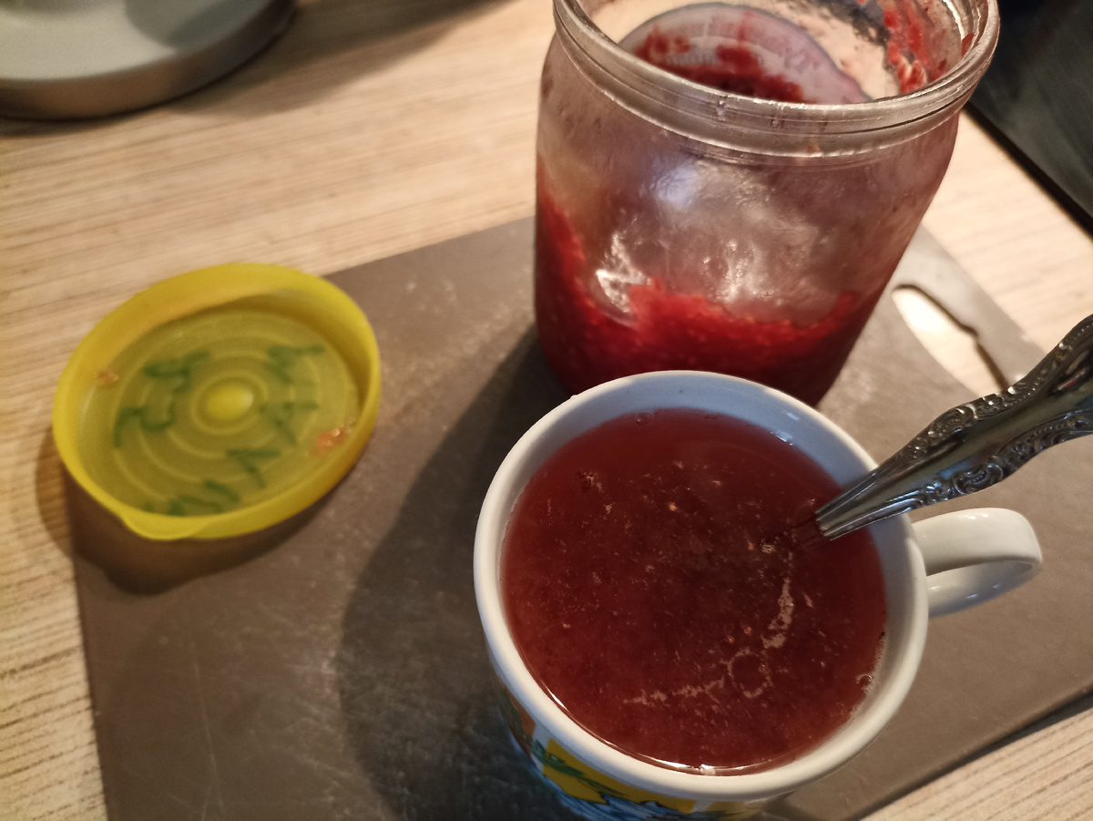 ...С чая и малинового варенья... Дочь чуток простыла... нос забит... Оставила дома сегодня... Придётся корректировать свои планы и дела... На завтрак напекла блинов с сахаром и маслом сливочным и несколько штук сделала с сыром и ветчиной... Муж ещё яичницу съел... Затем все разбежались по своим делам... Мы с Дарьей нос промыли, горло... Переутюжила гору чистых вещей, две стирки за утро ещё были... Собралась и на собеседование поехала, затем нужно в МФЦ заехать и к родителям в деревню... Они попросили, если поеду обратно им кое что купить из продуктов завести, заодно и себе тоже купить нужно масло, хлеб, сыр и... Ну и как же я без гостинцев то уеду?! Дарье сок тыква + яблоко послали и кусочки тыквы... Просто мама тыкву одну начала, она большая сама... Быстро её не съедят вот она и раздаёт... 😁... На обед девчонки без меня суп разогревали и гречку с тушенкой ели... Сегодня или завтра снова придётся какой-то супчик варить, осталась на одну порцию... Я обедала винегретом и коф