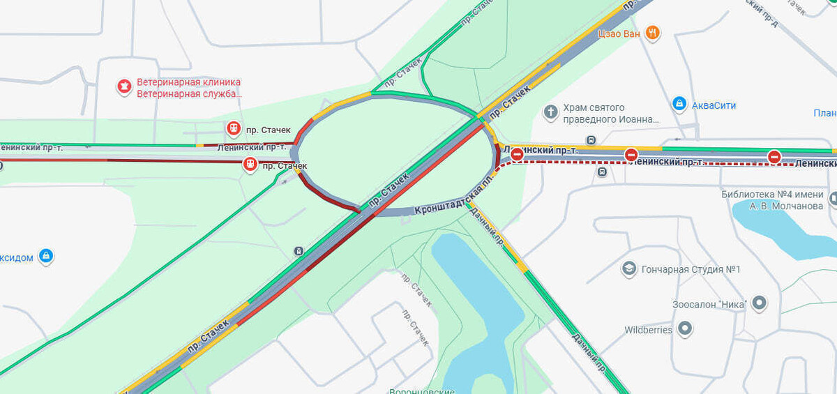 Из-за коммунальной аварии, которая произошла сегодня, движение транспорта полностью парализовано на пересечении проспектов Стачек и Ленинского. В направлении всех ключевых трасс образовались пробки.