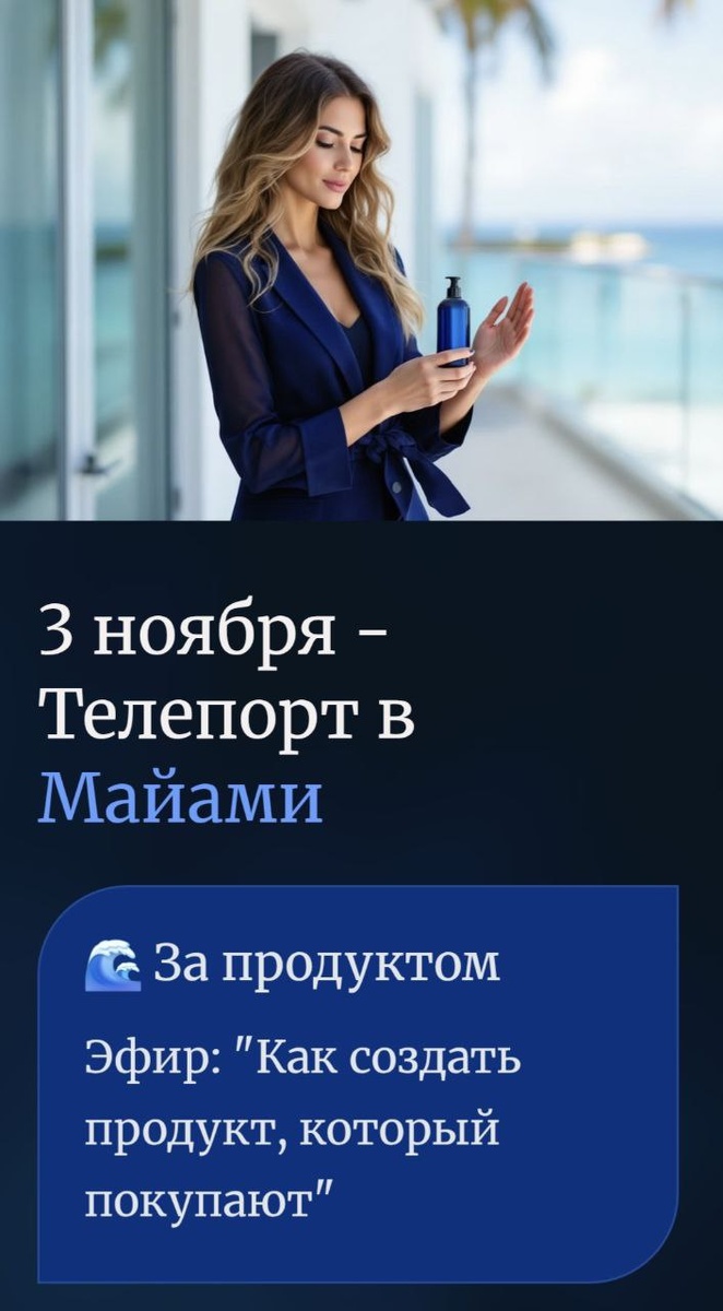 Утро началось странно. На столе лежал плотный глянцевый каталог с вычурной золотой надписью: «Лучшее, что Вам никогда не понадобится». Любопытство, как водится, оказалось сильнее здравого смысла. Он открыл первую страницу. — Маска для слонов с подогревом. Улучшает настроение в период межсезонья. Ни одной продажи, но все уверены, что рынок есть. Где-то. — Курс по управлению луной. Обещания грандиозные. Результатов — ноль. Подписчиков — два. Один из них автор курса. — Диплом коуча по слиянию аур. Гарантия получения в течение 24 часов. Никаких клиентов, зато красиво звучит в шапке профиля. Он пролистнул дальше, но стало как-то неловко. Почти все, что он видел — выглядело подозрительно знакомо. Как будто видел это в лентах соцсетей. Или… в собственных черновиках? Каталог оказался зеркалом. Зеркалом продуктов, которые создаются без главного вопроса: «Это действительно кому-то нужно?» ⸻ 📍 В 19:00 — телепорт в Майами ☀️ Практикум: Как создать продукт, который покупают. Не обсуждают.