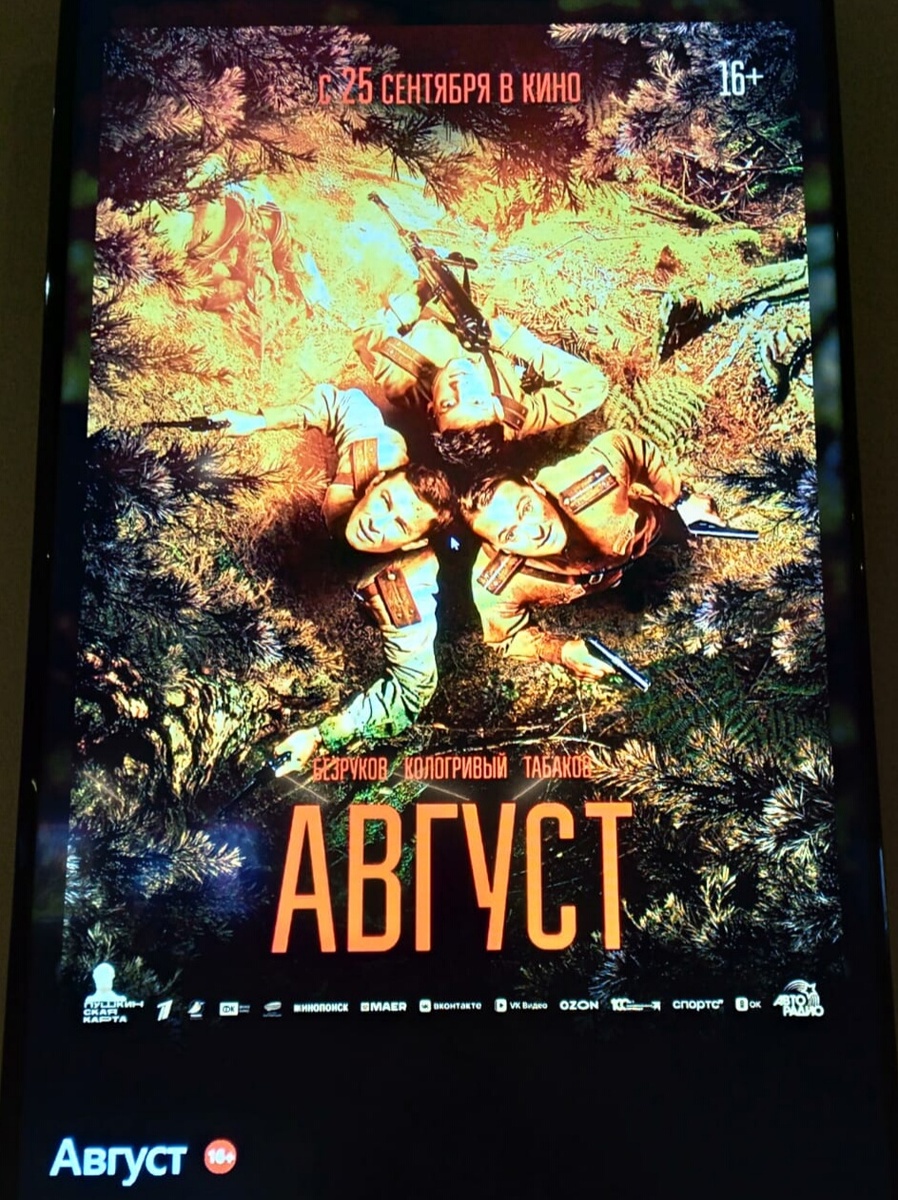 Всем привет. В четверг я ходила сдавать анализы. В частности, анализ крови у меня был назначен на 9:28. Вход в кабинет только по времени, и на забор крови определена одна минута. Передо мной были женщины с временем 9:26 и 9:27 и так далее, и за мной тоже очередь была через одну минуту. За минуту, естественно, взять кровь не получилось, и по времени я попала в кабинет в начале десятого, но и то хорошо. Дома накануне я решила, что если успею, то после поликлиники пойду в кино. Вышел новый фильм режиссера Никиты Высоцкого "Август". По роману Константина Богомолова "В август 44 - го(Момент истины)". Наверное, все читали роман, а уж фильм "В августе 44-го" наверняка многие смотрели. В старом фильме главные роли играют Евгений Миронов, Владислав Галкин и Юрий Колокольников. Про новую экранизацию этого романа я почти ничего не знала и ничего не читала, и мне было интересно посмотреть новый фильм и, может быть, сравнить со старым. Старый фильм мне нравился, и я его смотрела несколько