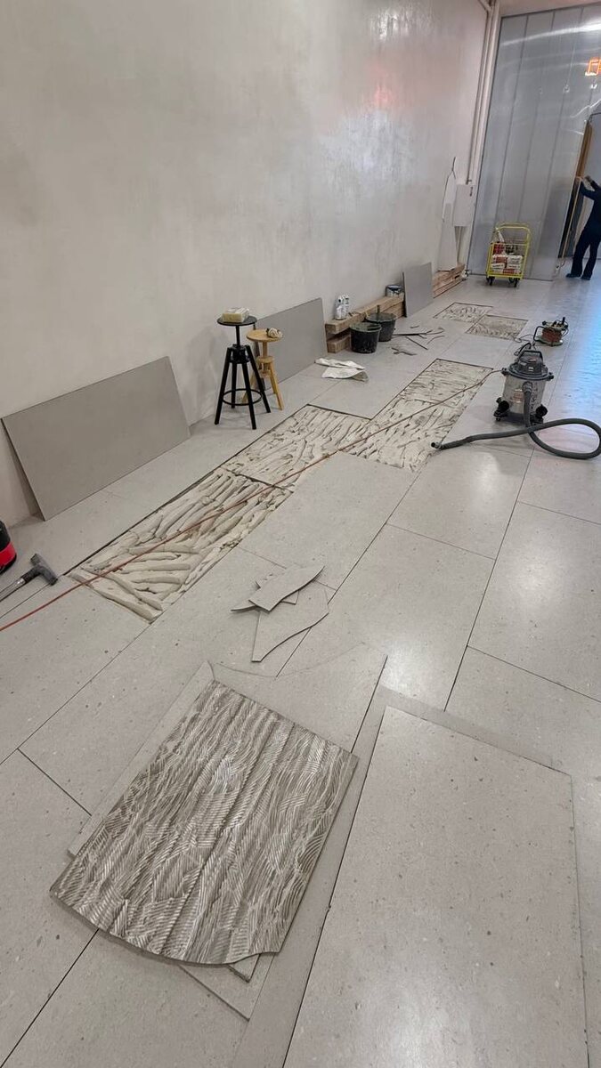 Уххх, когда мы выбирали напольные покрытия для этажей на Семеновской, на 4 мы впервые выбрали бетонный пол, а на 3 решили уложить проверенный керамогранит, сейчас мы уже осознали что везде надо было делать бетон) Не повезло нам с основанием, оно создано для крупных станков и слегка подвижно чтобы гасить вибрации в итоге часть плитки просто отвалилась 🥲 Мы долго не расстраивались и целиком переложили плитку в зале Joke, а так же часть плитки в общих зонах, теперь никаких пустот и битых плиток 💪🏻