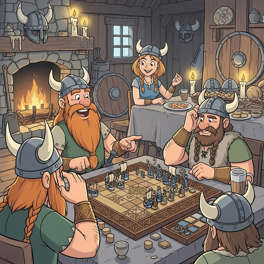 Когда мы думаем о настольных играх эпохи викингов, на ум чаще всего приходят шахматы. Но это заблуждение! Задолго до того, как шахматы попали в Северную Европу, в суровых длинных домах и на солнечных палубах драккаров кипели не менее жаркие баталии. Игра называлась Хнефатафл (Hnefatafl) — «игра короля», стратегическая битва на доске, где стороны были не равны, а это делало её уникальной и бесконечно увлекательной.