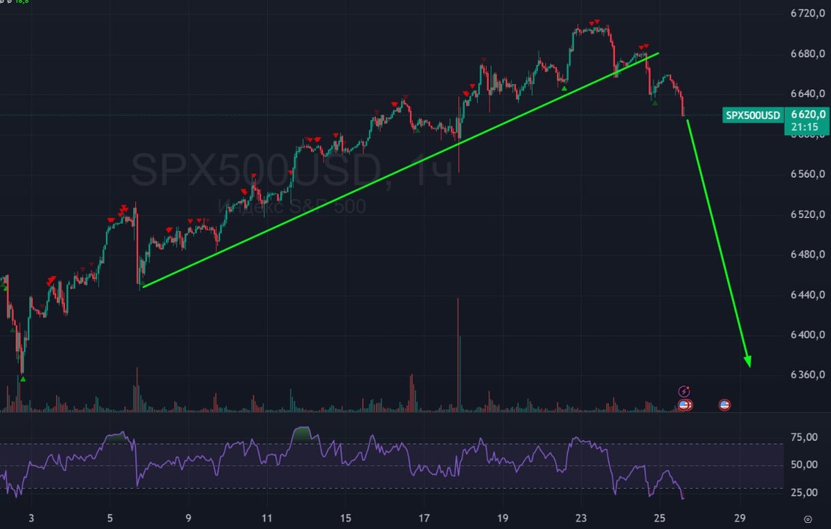 🟢В утреннем видео сегодня говорил следить за сегодняшней свечкой по S&P500. В настоящий момент у нас подтверждение коррекции. Если кто шортит, то ставьте стопы в безубыток.