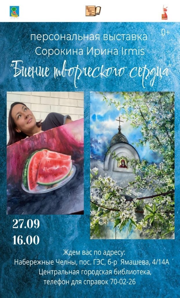 27 сентября в 16:00 в Малой картинной галерее Центральной городской библиотеки состоится открытие художественной выставки Ирины Сорокиной.