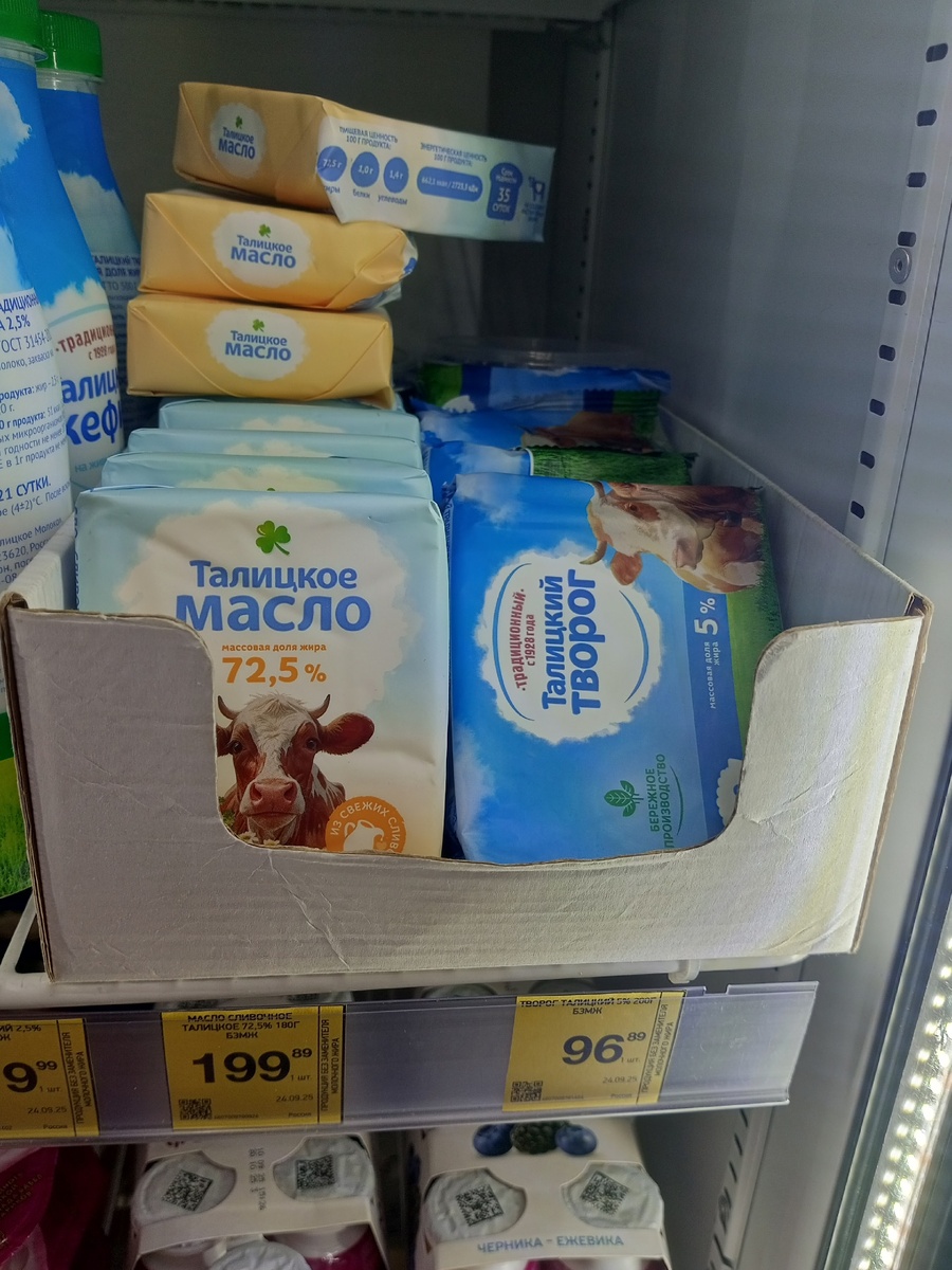 Раньше в магазине было масло только от "Простоквашино", причем тоже 72,5%, из-за чего, собственно, я его покупала крайне редко. Нынче привезли и масло другого производителя, хотя в общем смысле ничего не поменялось, я и во вкусе разницы особой не вижу. А предлагают нам продукцию из Талицы, у них достаточно много хороших и действительно вкусных новинок по хорошим ценам, однако тут не вижу выгоды.