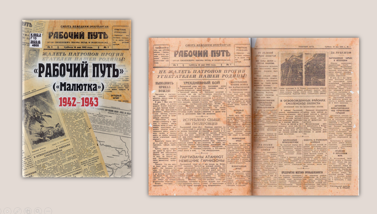 В 2021 году в Смоленске вышла в свет книга «Газета "Рабочий путь" ("Малютка"). Орган Смоленского обкома ВКП(б) и облисполкома, 1942-1943 годы». В ней факсимильное воспроизведение всех номеров газеты. Газета «Малютка» для публикации была предоставлена родственниками из личного архива Леонида Васильевича Котова (1928-1999) – историка-краеведа, члена Союза журналистов СССР. Это издание вышло малым тиражом, всего – 100 экземпляров и хранится в редком фонде библиотеки. С весны 1942 года стал выходить специальный выпуск «Рабочего пути» для партизанских отрядов и населения оккупированных районов области. Это была газета небольшого формата, которую в народе любовно называли «Малютка». В её левом углу, на уровне заголовка указывалось: «Специальный выпуск для жителей районов Смоленской области, временно попавших под иго немецко-фашистских захватчиков». В правом углу – обращение: «Советские граждане! Прочитав эту листовку, передайте ее своим соседям, родным, друзьям». Первый номер вышел 16 мая 19