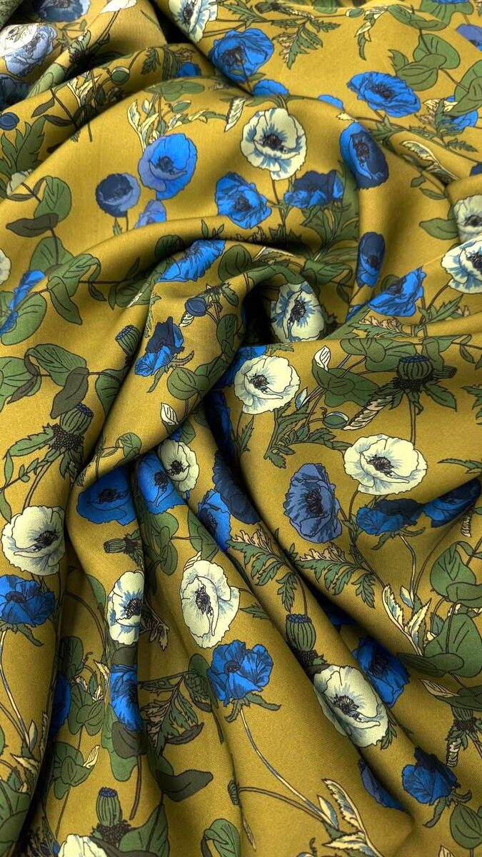 Плательно-блузочная АЛЬТА МОДА Ярко-голубые анемоны на насыщенном оливковом фоне. Летящая шелковая ткань низкой сминаемости с мягким сиянием. Полотно текучее, не просвечивает. Арт:11.04.25.037 Состав: 100% шелк Ширина: 150 см Стоимость: 6790 ₽ п.м. Рекомендации по уходу: только сухая чистка Проконсультироваться и сделать заказ @O_Fabric WhatsApp +79668611153