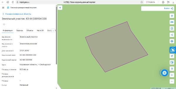 Название: Земельный участок, площадью 833 кв.м, кадастровый номер 43:44:330104:330, категория земель: земли населенных пунктов, вид