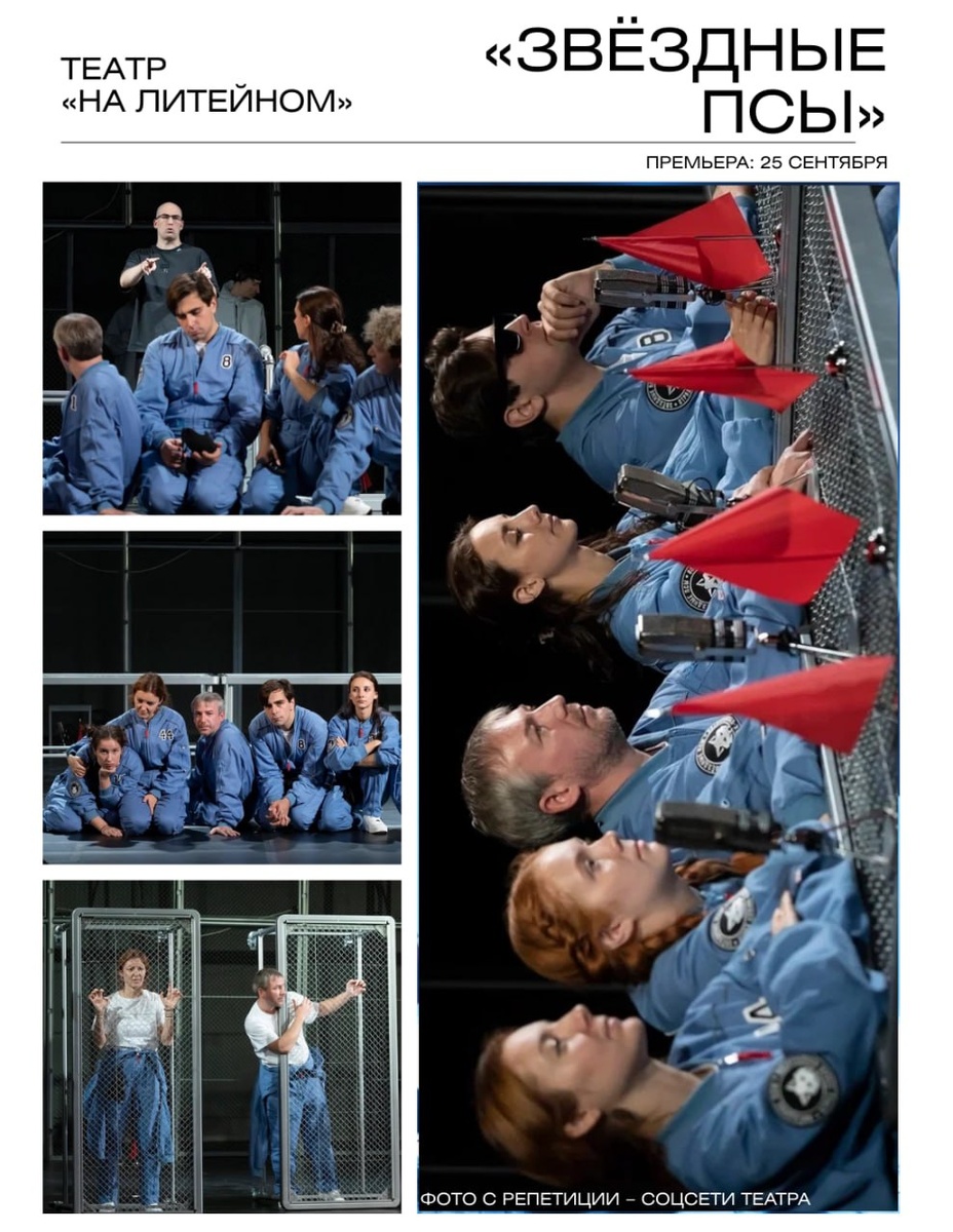 В санкт-петербургском театре «На Литейном» расскажут о подвиге космических собак ❤️❤️❤️ Премьера спектакля «Звёздные псы» состоится сегодня, 25 сентября на Малой сцене театра. С этой постановкой в театре «На Литейном» дебютирует Дмитрий Крестьянкин — пожалуй, главный в нашей стране специалист по документальному и социальному театру. Возможно, такая слава повлияла на жанровую формулировку его новой работы: «недокументальная история о первых космонавтах». Впрочем, история советской космической программы при написании пьесы (сам Крестьянкин, без соавторов) изучалась, а имена (вернее, клички) действующих лиц — подлинные. Самых известных четвероногих героев — Белки, Стрелки, Уголька и Ветерка — среди них нет. Зато есть другие собаки, отправлявшиеся в полёт с 1951 по 1960 годы: Дезик, Лайка, Непутёвый, Рожок, Пчёлка, Мушка и ЗИБ (аббревиатура расшифровывается как «Запасной исчезнувшего Бобика»). Многие из них в действительности не пересекались друг с другом, а также — что важнее — погибли