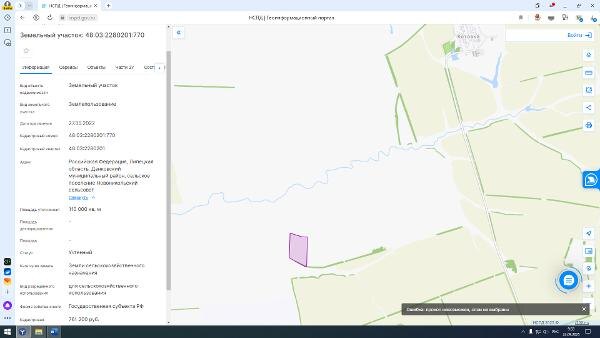 Название: Право на заключение договора аренды земельного участка с кадастровым номером 48:03:2280201:770, площадью 110000 кв.м, категория