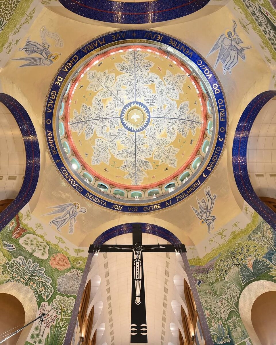 Базилика Богоматери Апаресиды в Сан-Паулу является крупнейшим католическим храмом в Латинской Америке и одним из самых посещаемых мест в мире. Каждый год сюда стекаются миллионы паломников, чтобы поклониться статуе Девы Марии Апаресиды, покровительницы Бразилии. Именно здесь итальянская фабрика FRIUL MOSAIC реализовала один из самых масштабных проектов в истории современной мозаики — оформление купола базилики, охватывающее более 2000 квадратных метров поверхности. Работа стала данью уважения духовному наследию и художественному видению Клаудиу Пастру— великого бразильского художника, чьи эскизы легли в основу мозаичных панно. Каждый фрагмент — это результат кропотливой ручной работы, отражающий как священную символику, так и архитектурную грандиозность этого места. Мозаика оживляет свод храма, превращая его в монументальное полотно веры и искусства. Напоминаем, что мозаичные покрытия FRIUL доступны для заказа в DUSHLUX! Мы знаем, как сделать Вашу ванную комнату особенной! Подр
