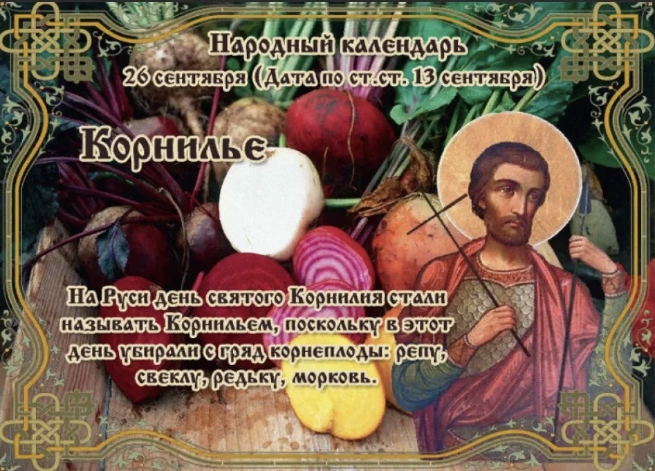 26 сентября-В этот день Православная Церковь отмечала память святых мучеников Гордиана, Макровия, Илии, Зотика, Лукиана и Валериана, которые пострадали в IV веке в Пафлагонии, а так же чтит память Корнилия - римского сотника из Кесарии Палестинской, который был обращен в христианство апостолом Петром. ❇️ПРИМЕТЫ ✔️Если все грачи на юг улетели, то скоро снег пойдет. ✔️Куры линять начали - зима теплой будет. ✔️Не убрать до Корнилия урожай с огорода - дурная примета. ✔️Хороший урожай редьки - к богатству в доме. ❌ЧТО НЕЛЬЗЯ ДЕЛАТЬ ✔️Плохой день для сватовства и свадьбы – брак будет сложный и недолгий. ✔️Нельзя перед выходом из дома смотреться в зеркало - в течение дня могут случиться неприятности. ✔️Нельзя есть перед зеркалом или окнами, в которых видишь собственное отражение - злые духи могут проникнуть в тело. ✔️Нельзя на Корнилия веселиться, иначе потом придется плакать. ✔️Нельзя спать на двух подушках - к неудачам. ✔️Нельзя мыть посуду гостям, так как они могут смыть тепло и уют д