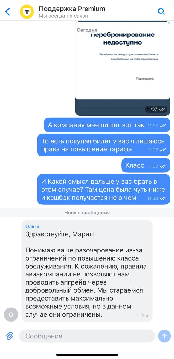 Ага. Вот и бери у Т-банка авиабилеты. Обычно, я по умолчанию беру эконом и потом делаю апгрейд до бизнеса. Сейчас иду на сайт авиакомпании и они говорят, что повышение тарифа доступно только тем, кто покупал билеты СТРОГО на сайте авиакомпании. То есть, если покупали через агрегатор, то гуляй Ваня. В Т-Банке ответили тоже самое — Гуляй, Ваня, по эконому.