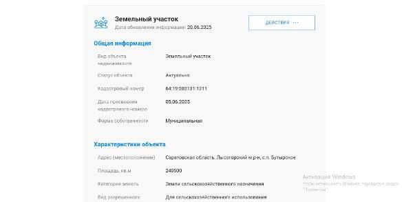 Название: Земельный участок с кадастровым номером 64:19:080101:1311 площадь 240500 по адресу Саратовская область, Лысогорский м.р-н, с.п. Бутырское Канал: Госземля Саратовская область Область: обл Саратовская Район: м.р-н Лысогорский Населенный пункт: с.п. Бутырское Локация: Смотреть на карте ВРИ: Сельскохозяйственное использование Кадастровый номер: 64:19:080101:1311 Кадастровая стоимость: 634920.00 Вид сделки: Аренда Площадь: 240500 м² Начальная цена: 148000.00 руб. Дата завершения: 20.10.2025 Подробнее: ГИС ТОРГИ #госземля #земляотгосударства #земля #земельныйучасток #земельныеторги #торги #аукцион #арендаземли #аренда #саратовскаяобласть