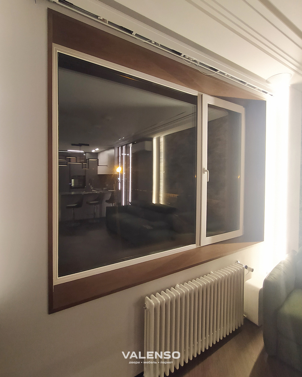 В завершении рассказа об интерьере этой квартиры мы хотим показать ещё один важный акцент. На фотографиях видно, как мы оформили оконные откосы натуральным шпоном. В том же стиле выполнена отделка широкого портала и дверного проёма. Такие детали работают не только как декоративные элементы, но и создают цельный образ интерьера. Шпон добавляет пространству тепла и тактильной глубины, связывая между собой разные материалы и зоны квартиры. В результате все решения, которые мы реализовали — от дверей до мебели и отделки — собраны в единую гармоничную композицию, подчёркивающую индивидуальность проекта. Авторы проекта интерьера: Ирина Андроненкова и Татьяна Власова.