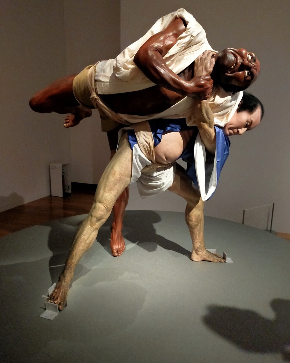 «Живые» статуи Ясумото Камэхати прославились на стыках эпох Эдо и Мэйдзи. Его работы стали известны благодаря сверхдетальной проработке скульптур и правдоподобной передаче жестов, мимики и одежды. На снимке из Музея современного искусства в Кумамо́то (Contemporary Art Museum in Kumamoto city) показана его статуя двух сумоистов. #История_факт