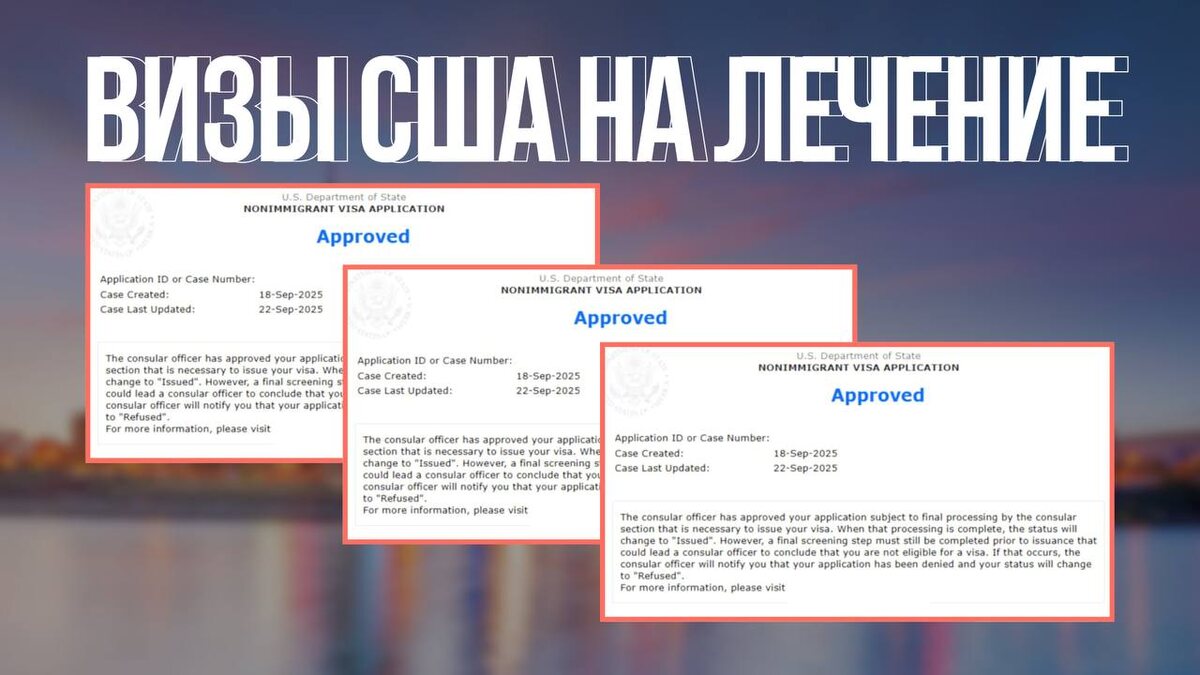 Первичные визы США на лечение 🇺🇸 22 сентября: одобрение первичных виз США на лечение. Собеседование было назначено до последних изменений. Кейс: мама с ребёнком и с бабушкой. Девушка замужем, не работает. Бабушка не состоит в браке, находится на пенсии. Лечение полностью оплачивает клиника. В Казахстане остаётся отец девочки. За последние 5 лет была посещена 1 страна. Собеседование проходили на русском языке. Вопросы консула: – Какая цель вашей поездки? – Кто оплачивает лечение? – Где вы живёте? – Где вы работаете? – Где работает ваш муж? – Сколько раз вы меняли фамилию? – Сколько у вас всего детей? После ответов на вопросы консул одобрил визы США на лечение! Получить визу США ⬅️ Записаться на консультацию ⬅️ #кейс #виза_сша #виза_сша_на_лечение