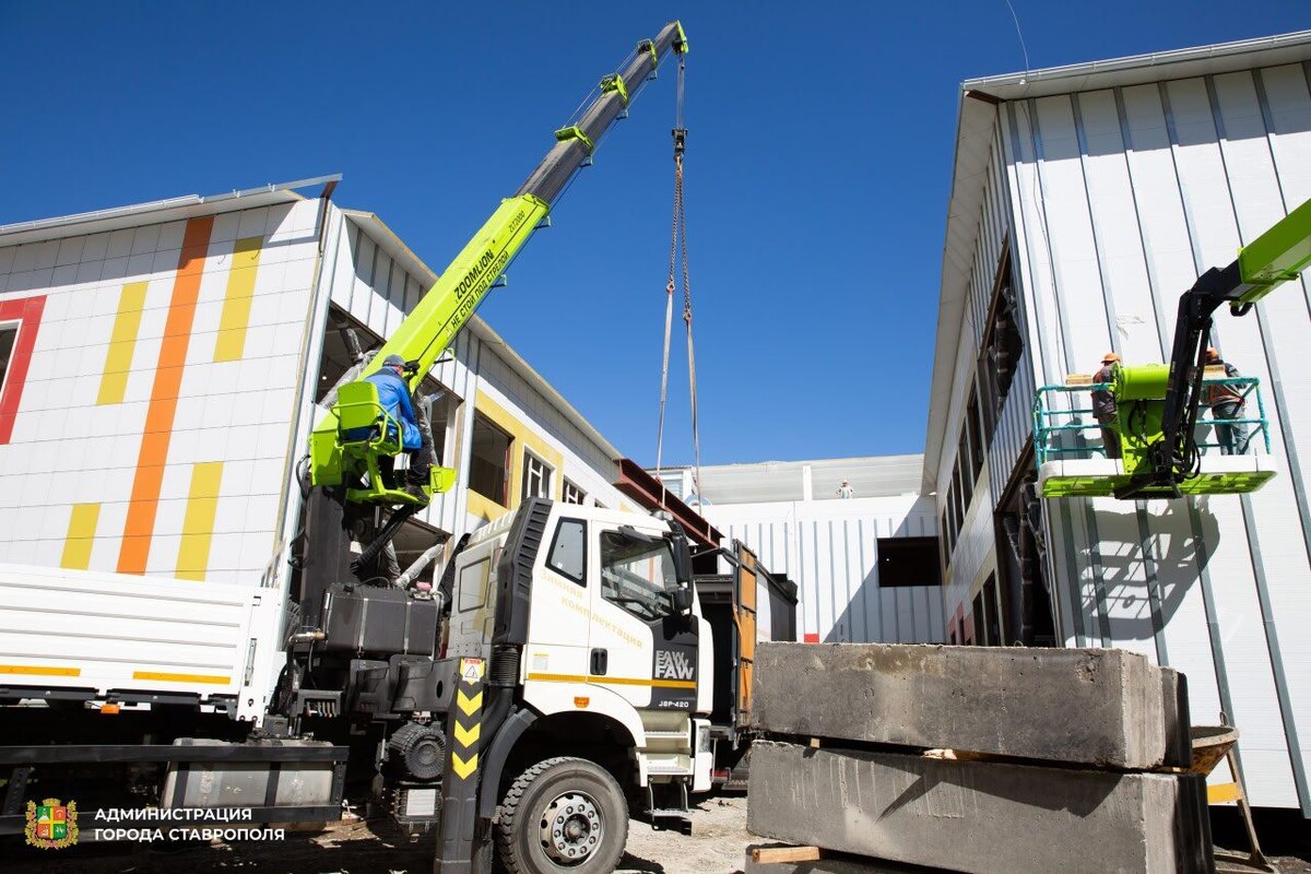 Как сообщили в администрации Ставрополя, на данный момент уже возвели стены здания и провели основную часть кровельных работ. Продолжается монтаж внутренних перегородок и окон, облицовка фасада, параллельно специалисты проводят сети электроснабжения, водоснабжения и водоотведения, системы кондиционирования и вентиляции. Также стартовали отделочные работы.