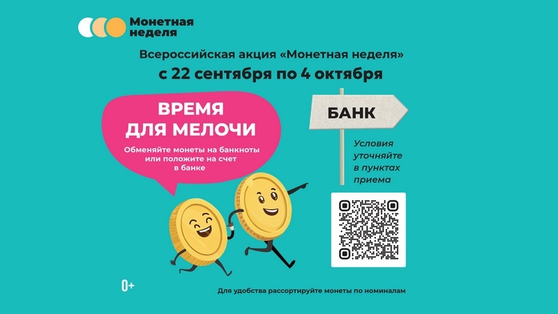 Банк России с 22 сентября по 4 октября проводит всероссийскую акцию по приёму монет. В Тамбовской области к акции присоединились 42 банковских отделения и более 200 точек из числа сетевых магазинов. Принести накопившуюся мелочь и обменять ее на бумажные деньги можно в любом банке или магазине, которые участвуют в акции. Кроме того, в банке можно положить мелочь на свой счет. Приниматься будут любые российские монеты, выпущенные после 1997 года. Адреса, куда принести мелочь, и условия обмена можно узнать на сайте Монетнаянеделя.рф. По итогам акции, которая проходила весной, тамбовчане вернули в денежный оборот почти миллион монет на сумму около 5 млн рублей. По числу собранной мелочи Тамбовская область вошла в тройку лидеров среди регионов ЦФО. Больше трети сданных тамбовчанами монет – десятирублевые монеты. Второе и третье место занимают наиболее востребованные в магазинах монеты номиналом 1 и 2 рубля. Подробнее об акции - Монетнаянеделя.рф Без возрастных ограничений