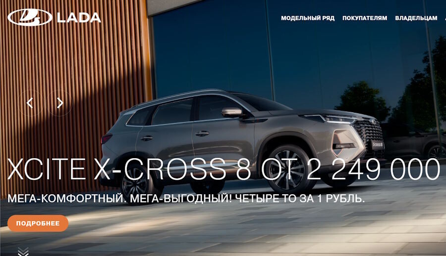 Рекламный баннер с кроссовером Xcite X-Cross 8 впервые появился на официальном сайте марки «Лада». На это обратил внимание сайт Wroom.ru. Кроссоверы Xcite, которые недолгое время собирали на бывшем «ниссановском» заводе в Санкт-Петербурге, продаются через официальную дилерскую сеть марки «Лада». При этом представители АвтоВАЗа старались дистанцироваться от бренда Xcite, отмечая, что формально это независимый проект. Выпуск «Иксайтов» завершился ещё весной этого года, новых моделей марки в ближайшее время не ожидается, а дилеры пытаются распродать запасы машин. На этом фоне на официальном сайте «Лады» появилось упоминание кроссовера Xcite X-Cross 8 с перечислением достоинств и преимуществ модели. Ссылка с баннера ведёт на официальный сайт «Иксайта». Это, вероятно, первый случай, когда на официальном сайте «Лады» рекламируются автомобили другой марки. С сентября для покупателей кроссовера Xcite X-Cross 8 (переименованный Chery Tiggo 8) действует новая акция: при покупке кроссовера можно