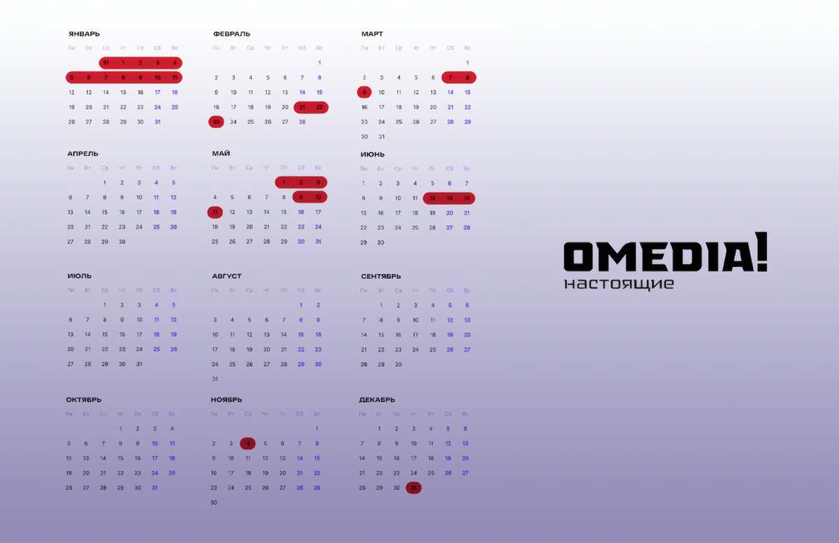 Так как праздничные нерабочие дни 3 и 4 января выпадают на субботу и воскресенье, решено перенести их на четверг, 31 декабря, и пятницу, 9 января. В итоге новогодние каникулы продлятся 12 дней — с 31 декабря 2025 года по 11 января 2026 года.