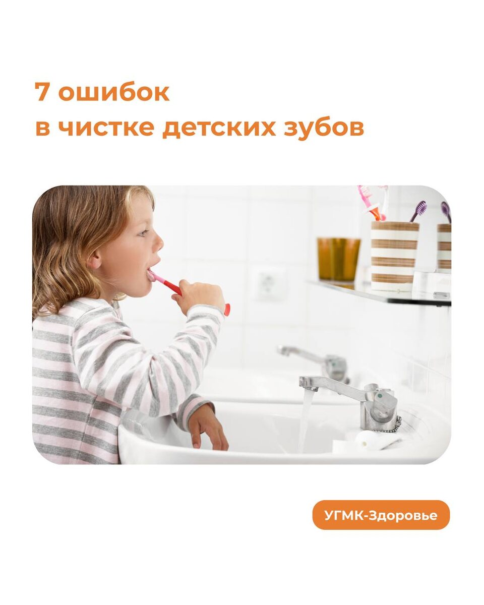7 ошибок в чистке детских зубов, которые делают даже заботливые родители Кажется, что забота о здоровье детских зубов — простая привычка, с которой легко справиться. На что важно обратить внимание и какие ошибки совершают даже внимательные папы и мамы? Рассказывает стоматологический гигиенист «УГМК-Здоровье» Мороз Яна Ивановна. 1️⃣ Дают чистить зубы ребёнку самостоятельно слишком рано. До 8–9 лет мелкая моторика детей развита недостаточно, поэтому родителям лучше дочищать зубы. 2️⃣ Наносят слишком много пасты. До 3 лет нужен объем размером с рисовое зёрнышко, с 3 до 6 лет – горошинка. 3️⃣ Чистят сразу после сладкого или кислого. Эмаль в этот момент размягчена. Лучше подождать 20–30 минут или хотя бы прополоскать рот водой. 4️⃣ Ограничиваются только зубами. На языке скапливается до 70% бактерий ротовой полости. Его тоже нужно чистить! 5️⃣ Чистят меньше 2 минут. В среднем дети (и взрослые!) держат щётку во рту 30–40 секунд. Игровые песочные часы или приложение-таймер помогают выде
