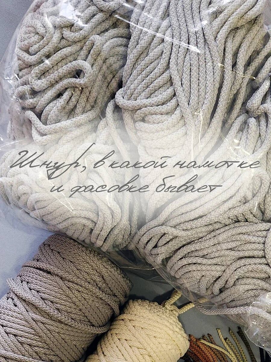 Шнур, в какой намотке и фасовке бывает Когда я только начинала вязать ковры, думала: шнур — он и в Африке шнур. Но со временем поняла: то, как он намотан и упакован, очень влияет на удобство вязания и расход моего времени. И за годы я успела повязать шнур практически во всех возможных фасовках. 🎯 Мотки Это моя «любовь» в вязании. Аккуратные клубочки по 200 м, которые удобно хранить и брать с собой. Очень нравится, что можно тянуть нить из центра или снаружи. Правда, если проект большой, приходится соединять несколько мотков, но это дело привычки 😉. 🛍 Пакеты с непрерывной нитью С ними я познакомилась позже. Обычно там 500–1000 м одной нитью, и это здорово — меньше узлов, вязание идёт быстрее. Но такие пакеты нужно «любить бережно»: если сильно мять или крутить, нить может запутаться. 📦 Коробки и мешки Это уже история про большие проекты и серии ковров-гигантов. В коробках обычно от 2000 м и больше, нить идёт без разрывов, цвет одной партии — идеально для больших заказов. Но есть