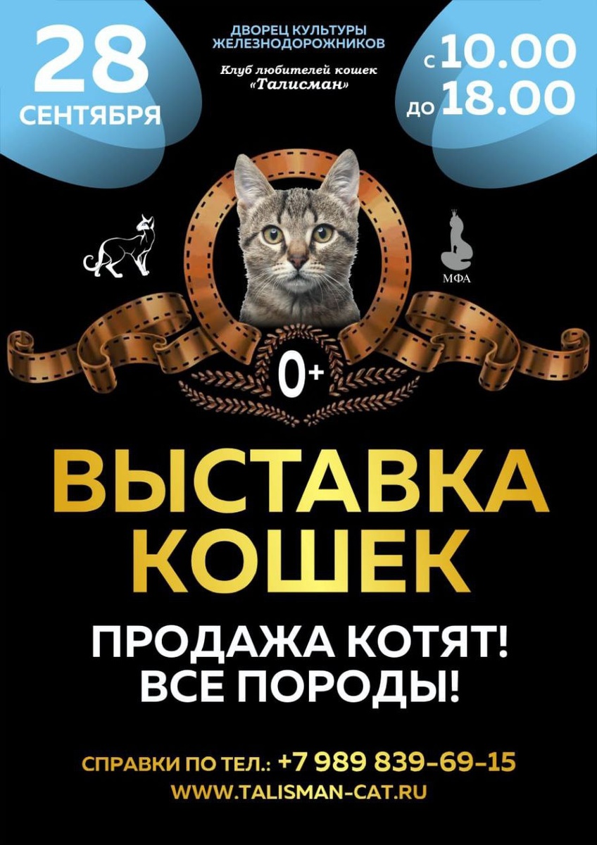 Приглашаем на Выставку кошек в Краснодаре! Выставка открыта для Всех желающих 28 сентября с 10-00 до 18-00. Место проведения: Дом Культуры Железнодорожников (вход со стороны ул. Мира) На выставке будут представлены кошки разных пород, будет продажа котят! Также в программе выставки развлекательные конкурсы с участием кошек: Конкурс костюмов, «Самый рыжий», «Самые синие глазка», «Человек и кошка», «Самый длинный и короткий хвост», и многое другое! Вход платный! Билеты приобретаются на кассе на входе на выставку. Взрослый билет - 400 руб. Детский (с 3 до 9 лет) и пенсионеры - 300 руб. Дети до 3 лет бесплатно! Все вопросы, справки по тел. +7 989 839-69-15
