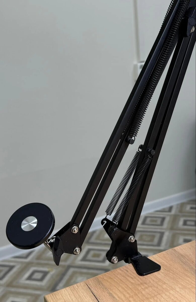 Штатив уже стал неотъемлемым атрибутом для мастера маникюра. Он надежно крепится к столу, но самый главный плюс - магнитная головка. Достаточно просто приклеить магнит, который входит в комплект, к чехлу телефона и просто примагнитить к штативу. Очень удобно, когда нужно быстро что-нибудь снять на камеру.