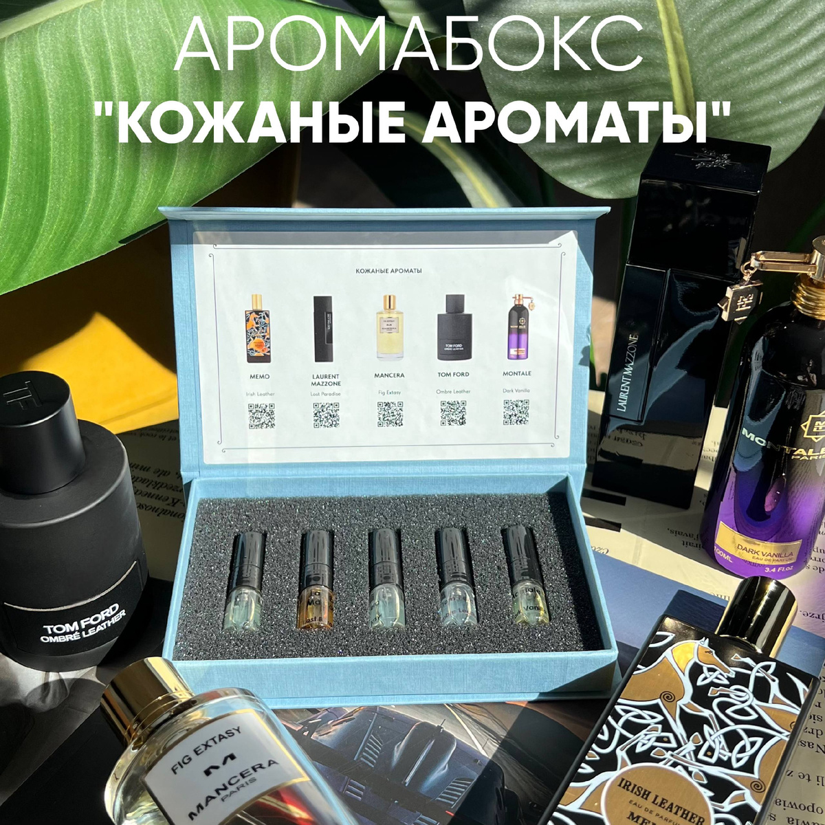 Aromabox | Кожаные ароматы Tom Ford Ombre Leather — изысканное переплетение мягкой кожи и жасмина с акцентами специй и амбры. Унисекс-аромат, в котором сочетаются элегантность и дерзость, статус и свобода. Mancera Fig Extasy — инжирное молочко встречается с дымом ладана и остротой перца. Сладость и глубина, лёгкость и серьёзность — гармония противоположностей в восточном стиле. Memo Irish Leather — травяная свежесть и ягоды можжевельника на фоне благородной кожи. Композиция о свободе и силе, словно утро в горах с ледяным ветром и бескрайними просторами. Montale Dark Vanilla — специи и кожа с удом и сандалом, окутанные тёплой сладостью ванили. Таинственный и манящий аромат, который особенно красиво раскрывается в холодные дни. Laurent Mazzone Lost Paradise — шафран и кардамон в обрамлении жасмина, переходящие в пачули и восточные