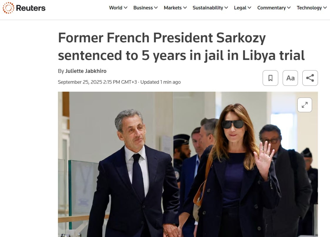 ⚡️ Former French Prez Nicolas Sarkozy sentenced to 5 YEARS IN PRISON with suspended arrest