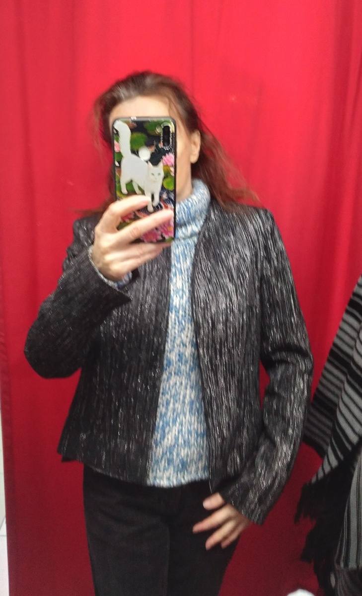 Здравствуйте, сегодня обзор из секонда и цена 590 за кг. Нарядный жакет без застежки. Ткань смотрится красиво, тёмно-серая с люрексом, но блеск не сильный матовый. А люрекс как каркас, ткань жесткая, можно сказать, что колом стоит. Двубортный жакет отрезной по талии. Ткань не тонкая костюмная, а толстая, из такой иногда шьют пальто. Синтетика, но должен быть теплым. Похоже, что новый, все пуговицы в комплекте. H&M. Светло-серая ветровка с 4 карманами и заклепками. Конечно, остаются вещи без капюшона, хотя курточка очень неплохая. Ellen Rose - бренд предлагает куртки разных стилей: спортивные, дутые, классические, а также жакеты. Использует натуральные материалы: кожу, шерсть, пух, хлопок. Красный жакет с жёлтыми молниями. Блузка с английским воротником, такой привычнее видеть на жакетах. Мне понравился рисунок с птичками. Сначала решила, что это снегири, но оказалось, что это может быть: С секондом мой кругозор растет на глазах))) Блузка сшитая как бы из платков, воротник и кокет