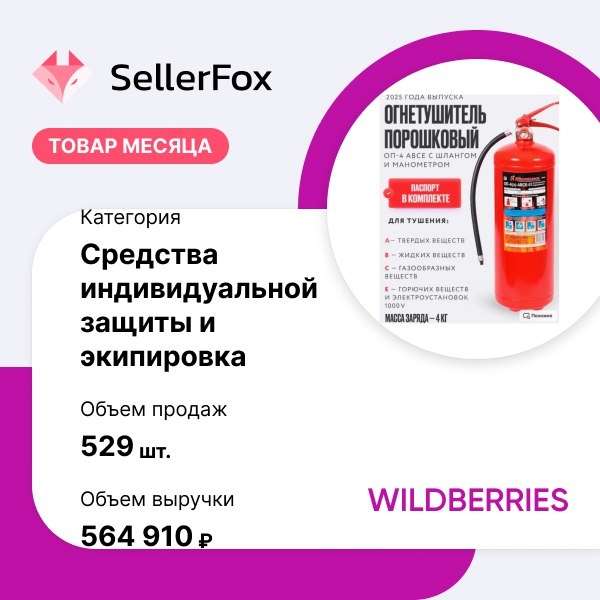 Становится жарко. Огнетушитель объемом 4 литра стал лидером по количеству продаж в категории "Средства индивидуальной защиты и экипировка" на Wildberries. За месяц товар приобрели более 520 раз на общую сумму свыше 560 тысяч рублей. В то же время производители систем пожарной безопасности жалуются на контрафактную продукцию на маркетплейсах, в частности датчики дыма и системы оповещения. По данным производителей, с начала года они выявили более 10 тыс. единиц оборудования, у которого нет сертификатов соответствия техническим регламентам. В Wildberries говорят, что профильные госорганы предоставляют площадкам «разнообразный функционал для проверки продукции». «И мы используем все их возможные вариации»,— утверждают в компании. В Wildberries добавили, что после вступления закона о платформенной экономике в силу карточка товара не будет отображаться до тех пор, пока продавец не разместит сертификат соответствия на платформе.