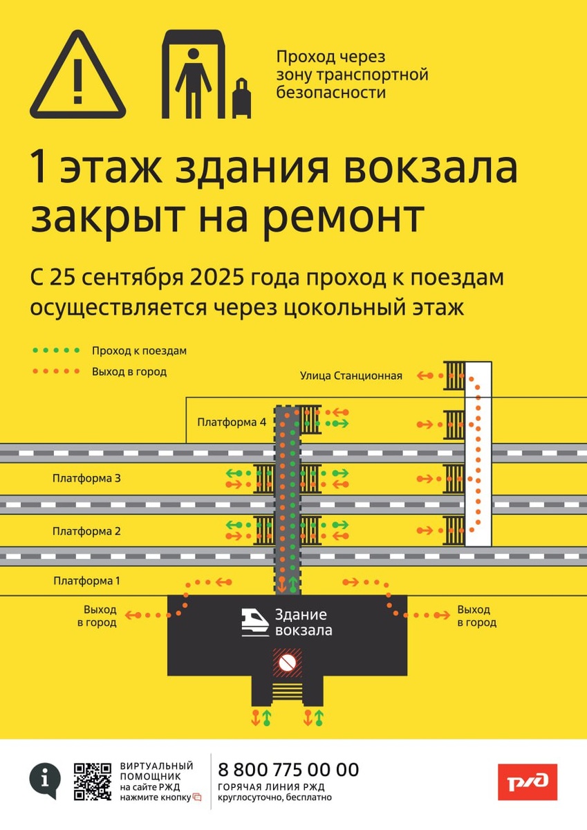 С 25 сентября, то есть с сегодняшнего дня, на вокзале Курска вступают в силу изменения в схеме прохода для пассажиров. Это связано с началом ремонтных работ на первом этаже здания.