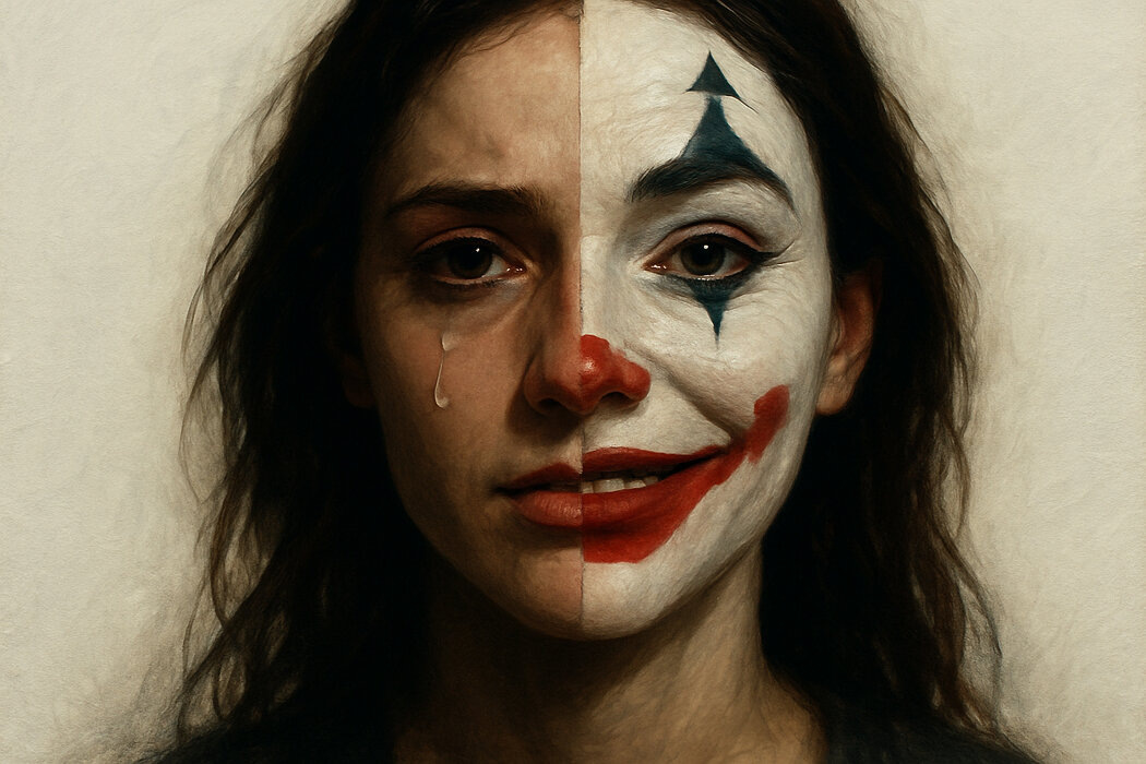 В фильме «Джокер» (2019) с Хоакином Фениксом мать главного героя, Артура Флека, с детства внушала ему что его миссия — «дарить людям смех и радость». Его буквально заставили играть роль, которая полностью противоречила его внутреннему миру. «Улыбайся и делай счастливое лицо».