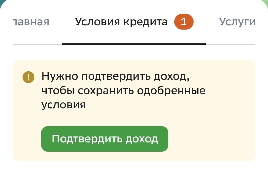 Друзья мои Милые мои потенциальный заёмщики Если Вы самостоятельно Да и не только самостоятельно подаёте заявку в Сбербанк то есть домклик и получили одобрение Сбербанк у нас даёт одобрение почти все то необходимо сразу зайти Вот на эту строку условия кредита и посмотреть и если там у вас висит надпись зелёным цветом подтвердить доход то необходимо его этот доход подтвердить это возможно сделать предложение справку по форме банка НДФЛ либо отправить запрос в Пенсионный Фонд без этого без этого у вас одобрение ненастоящее не подтвердив доход и не убрав эту зелёную надпись нет никакого смысла прикладывать документы на объект недвижимости вы скажете опять Алексей пишет какие-то прописные истины только почему-то большинство из вас это не делает И это касательно и агентств недвижимости если информация была полезна если не понял пишите индивидуально