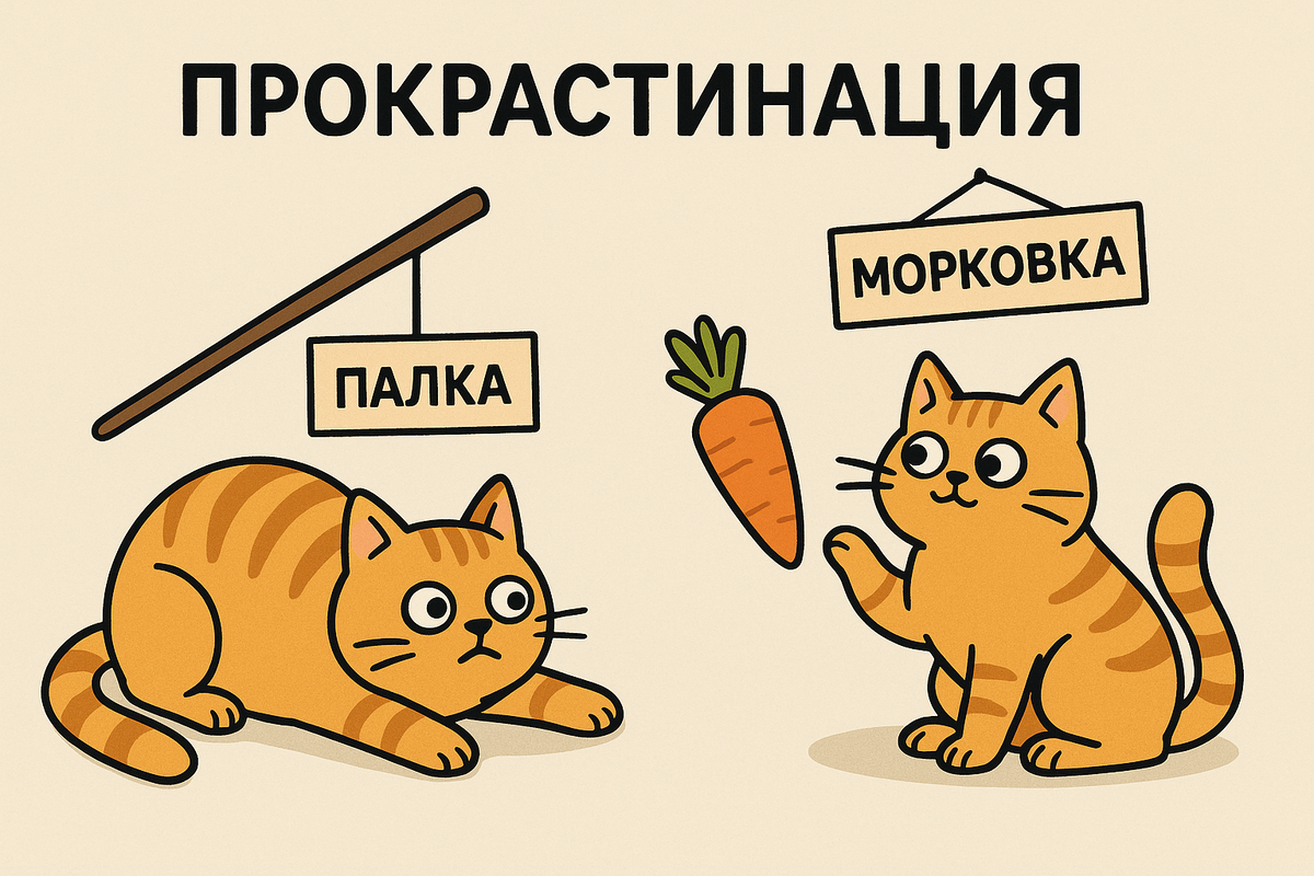 Если вы хотите сами — потому что цель вас зажигает — это морковка впереди. Но если ни того, ни другого нет? Мозг говорит: «Ну… а смысл напрягаться?» Пример из жизни.