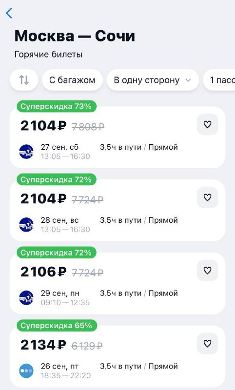 Сейчас из Москвы в Сочи можно улететь всего за 2000 рублей